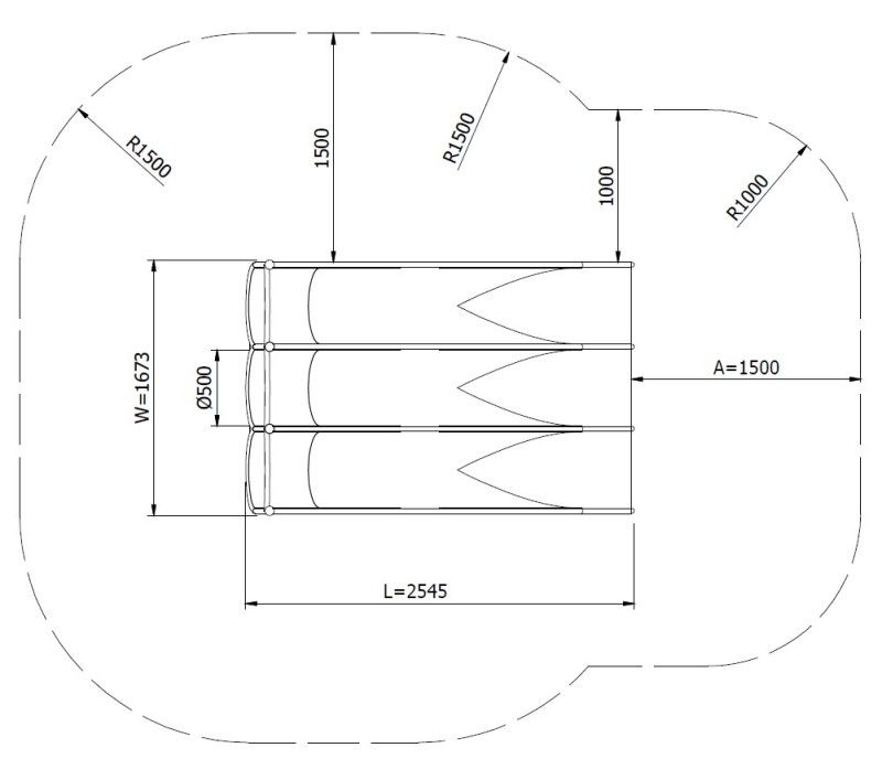 The GLITI RACE H1000 embankment slide consists of three straight trough-shaped slides that enable parallel and safe sliding. The structure is supported by nine foundation legs made of stainless steel, ensuring high strength, complete corrosion resistance, and excellent stability and durability of the entire unit. The slide is made entirely of stainless steel AISI 304 (1.4301), with a sheet thickness of 2 mm and a 33.7 × 2 mm profile; the surface is polished, weather resistant, and easy to maintain.
