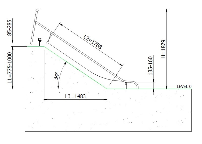 - Embankment height (L1): 775-1000 mm