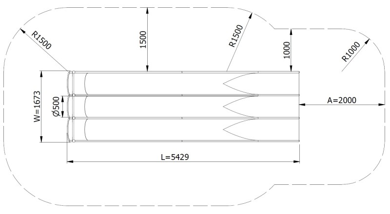 The GLITI RACE H2750 embankment slide consists of three straight trough-shaped slides that enable parallel and safe sliding. The structure is supported by sixteen foundation legs made of stainless steel, ensuring high strength, complete corrosion resistance, and excellent stability and durability of the entire unit. The slide is made entirely of stainless steel AISI 304 (1.4301), with a sheet thickness of 2 mm and a 33.7 × 2 mm profile; the surface is polished, weather resistant, and easy to maintain.