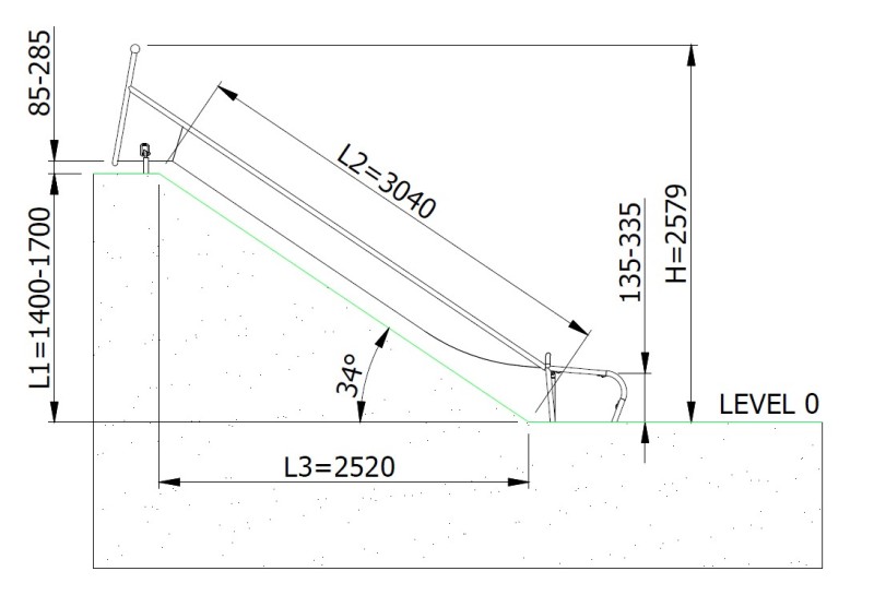 - Embankment height (L1): 1300–1700 mm