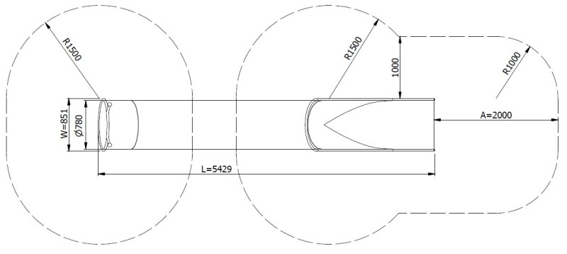 - Dimensions (L×W×H): 5,43 x 0,85 x 3,82 m