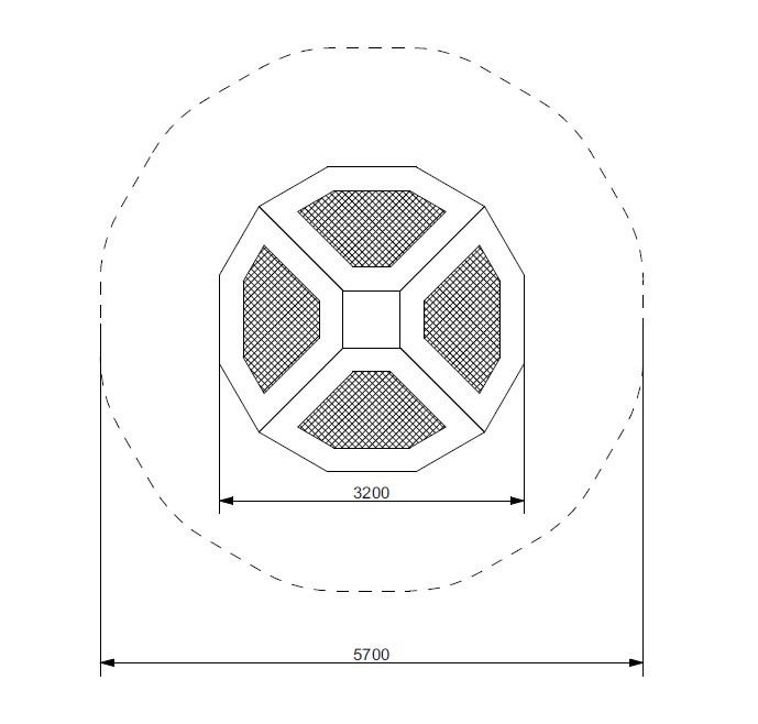 - Safety zone: 5,7 x 5,7 m